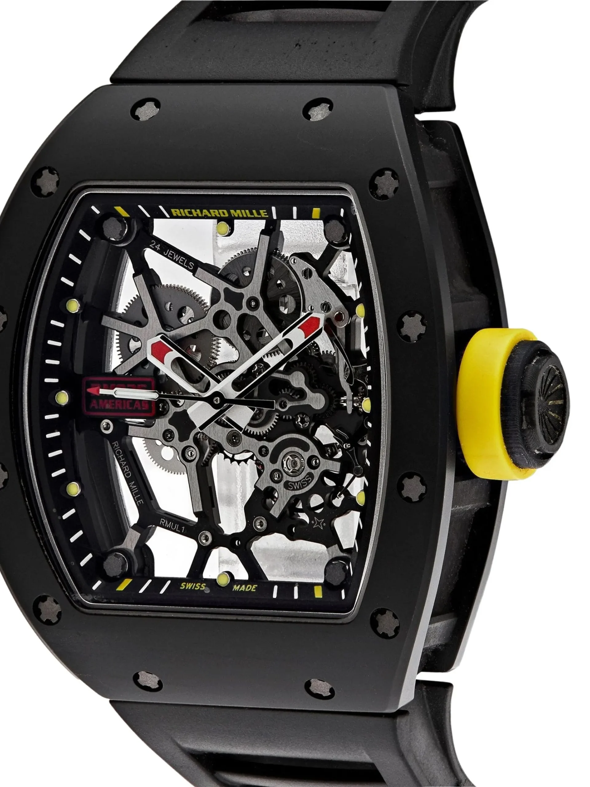 The RICHARD MILLE x Rafael Nadal RM 035 40MM watch is a true masterpiece of craftsmanship, standing out as a symbol of luxury and performance. Co-developed with tennis legend Rafael Nadal, this watch embodies cutting-edge technology combined with an avant-garde design. Designed for those who seek precision and exclusivity, its lightweight build and robust components make it equally suitable for professional athletes and connoisseurs of high-end timepieces.